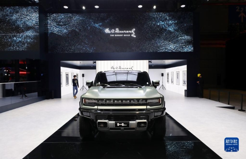 11月2日拍攝的通用汽車公司旗下道朗格品牌在進(jìn)博會(huì)上展出的純電悍馬SUV車型。