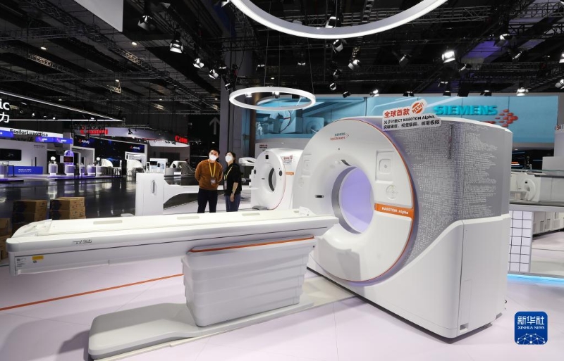 11月2日拍攝的德國(guó)西門子公司在進(jìn)博會(huì)展臺(tái)展出的大型醫(yī)療設(shè)備。
