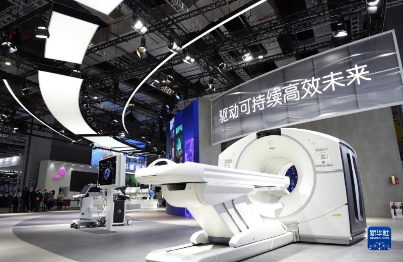 11月2日拍攝的美國(guó)GE公司在進(jìn)博會(huì)展臺(tái)展出的一臺(tái)大型醫(yī)療設(shè)備。