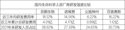 對于技術(shù)驅(qū)動型的行業(yè),必須加大研發(fā)投入,加強(qiáng)核心技術(shù)研發(fā),構(gòu)建核心技術(shù)平臺非常重要。2019-2021年,菲鵬生物研發(fā)費(fèi)用逐年增長,投入費(fèi)用約4.01億元;無論是研發(fā)費(fèi)用率,還是近三年研發(fā)人員占比均處于行業(yè)領(lǐng)先地位。