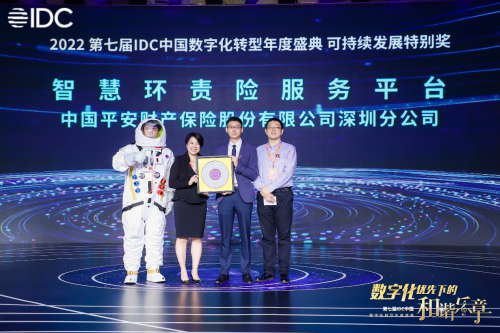 數(shù)字化轉(zhuǎn)型大獎由全球著名第三方研究機構(gòu)IDC設(shè)立,旨在表揚全球通過數(shù)字化和顛覆科技進(jìn)行市場改革的企業(yè)典范。該機構(gòu)認(rèn)為,數(shù)字化轉(zhuǎn)型應(yīng)圍繞“優(yōu)化創(chuàng)新”、“顛覆創(chuàng)新”、“和諧創(chuàng)新”三個核心關(guān)鍵詞,這也是“可持續(xù)發(fā)展特別獎”的重要評選指標(biāo),平安產(chǎn)險深圳分公司的“智慧環(huán)責(zé)險服務(wù)平臺”項目憑借其在綠色服務(wù)數(shù)字化轉(zhuǎn)型中的有益探索獲得了IDC的權(quán)威認(rèn)可。