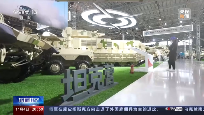 總臺央視記者 李寧:我現(xiàn)在來到的是兵器館的坦克營,整個兵器館布展基本已經(jīng)結(jié)束了。坦克和戰(zhàn)車是這里面的主角,我旁邊的就是VT4主戰(zhàn)坦克,它除了參與靜態(tài)展之外,還會出現(xiàn)在動態(tài)展的坦克表演中。