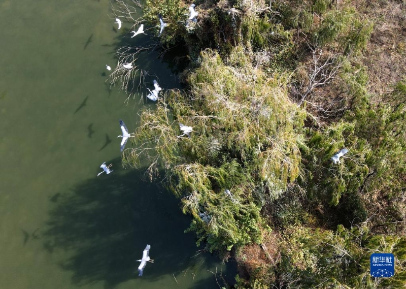 11月5日在安徽巢湖半島國家濕地公園內拍攝的蒼鷺(無人機照片)。