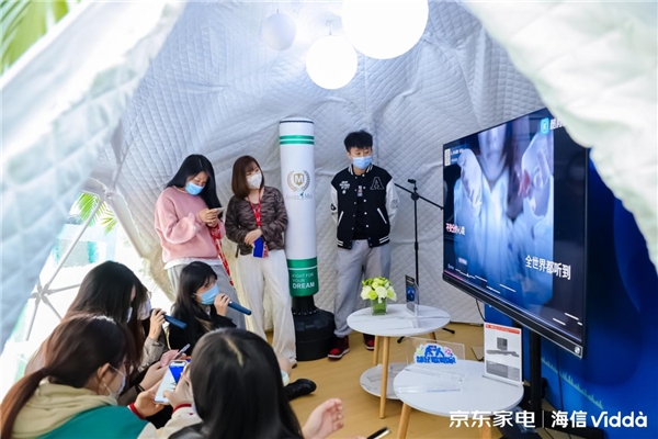 近日,京東大廈一樓驚現(xiàn)一座Vidda減壓屋。不少員工到訪體驗的員工都表示如此暢快的減壓感受是絕無僅有的。那么獲得員工如此高評價的減壓屋到底有何神秘之處?根據(jù)現(xiàn)場對員工的采訪發(fā)現(xiàn)原來京東減壓屋內(nèi)藏玄機,那就是京東和Vidda音樂K歌電視MUS聯(lián)手打造的K歌減壓區(qū),讓員工可以盡情高歌,釋放情緒。