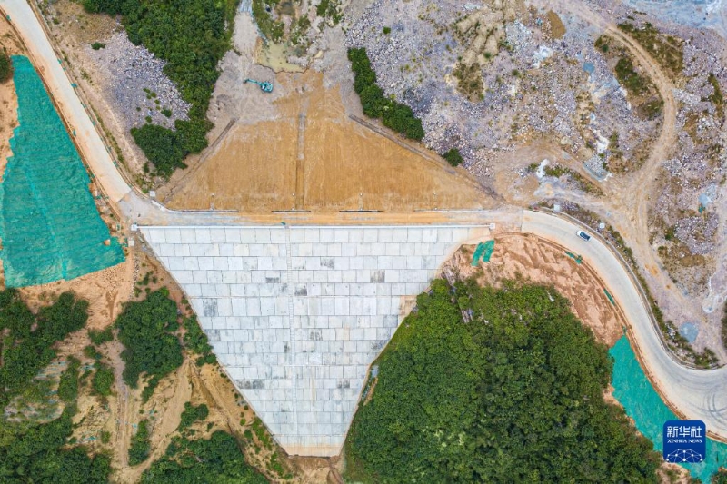11月7日在海南省儋州市拍攝的天角潭水利樞紐工程的一座副壩(無人機(jī)照片)。