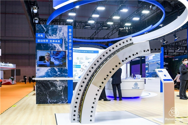 風(fēng)電作為重要的可再生能源,是生產(chǎn)綠氫的主要能源之一。蒂森克虜伯子品牌羅特艾德在進(jìn)博會(huì)上展示了其為全球大兆瓦風(fēng)機(jī)提供的關(guān)鍵技術(shù),并在展臺(tái)展示重達(dá)四噸的風(fēng)機(jī)主軸承部件。蒂森克虜伯羅特艾德掌握風(fēng)電領(lǐng)域的關(guān)鍵技術(shù),擁有全球最大的回轉(zhuǎn)支承研發(fā)中心,以支持打造更大、更可靠、更智能的風(fēng)機(jī)。全球前10家風(fēng)機(jī)制造商中就有9家使用蒂森克虜伯的關(guān)鍵零部件。