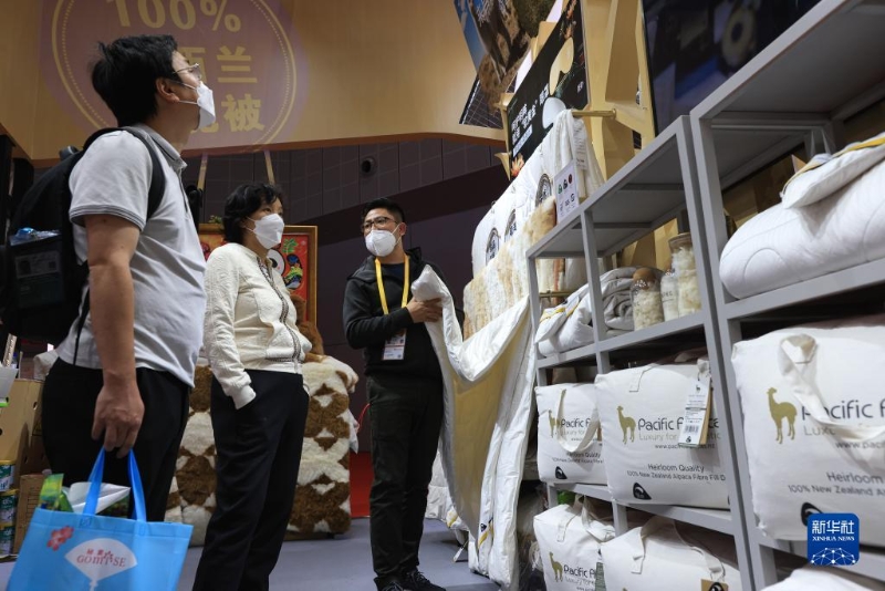 11月7日,參觀者在澳大利亞一家展商的展臺(tái)了解羊駝毛制品。