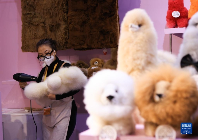 在第五屆進(jìn)博會(huì)上,來(lái)自澳大利亞、新西蘭和秘魯?shù)恼股獭安患s而同”展出羊駝毛制品,蓬松柔軟、形態(tài)各異的動(dòng)物玩偶在展臺(tái)“列隊(duì)”,吸引大批觀眾前來(lái)交流洽談,為進(jìn)博會(huì)增添一抹可愛(ài)的亮色。
