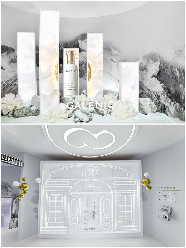 深入美學空間,錯落而置的五塊LED立屏映入眼簾,畫面中茫茫冰川、皚皚雪巔和現(xiàn)場四周眾多植物元素交相輝映,等待來賓一一探索Galenic 法國科蘭黎鉑金「雪藻」精華的誕生故事。而在轉(zhuǎn)角處, VC 精華區(qū)以“科學”“優(yōu)雅”的精妙平衡,呼應了Galenic 法國科蘭黎空間“平衡之美”。這里軸線對稱的拱門設計,精心雕琢的各式法式廊柱,無一不是經(jīng)典的法式建筑風格。沿街復古書架,與印有Galenic法國科蘭黎品牌故事的報刊讓人仿佛置身香榭麗舍大道,閑庭信步之余更能勾勒起每個人心中關于法國的印象。來賓漫步在浪漫的法式街頭,可盡情探索并體驗由Galenic法國科蘭黎極致科研匠心締造出的至美臻品,感悟“科學締造優(yōu)雅”的品牌理念。