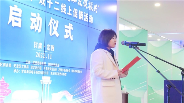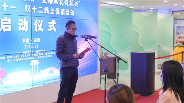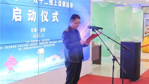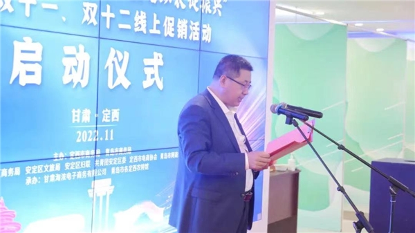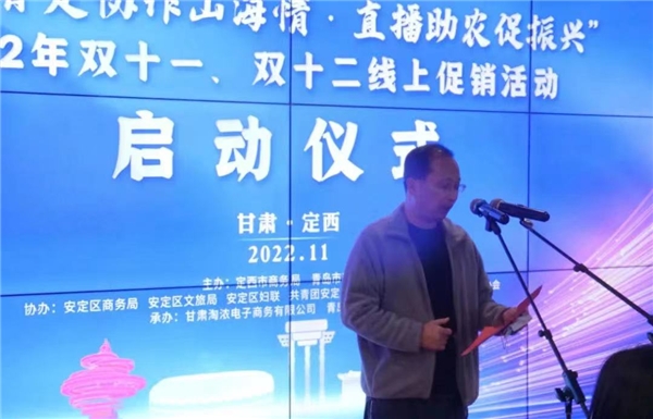 啟動儀式上,定西市商務局黨組成員、副局長孫志江致辭,定西市商務局黨組成員、副局長陳朔宣布定西市“青定協(xié)作山海情,直播助農(nóng)促振興”2022年雙十一、雙十二線上促銷活動正式啟動,啟動儀式由定西市安定區(qū)商務局黨組成員、副局長張國強主持。