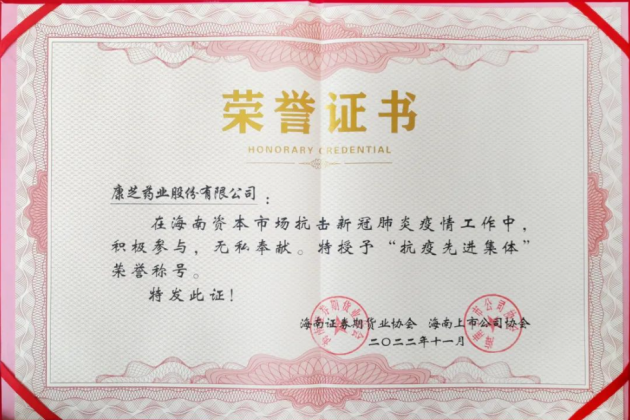 近日,在海南證監(jiān)局的指導(dǎo)下,海南證券期貨業(yè)協(xié)會、海南上市公司協(xié)會在??谡匍_海南資本市場抗擊新冠肺炎疫情先進事跡報告會,表彰抗疫先進個人和先進集體。會上,康芝藥業(yè)榮獲“抗疫先進集體”稱號。