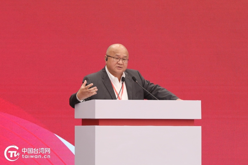 中共中央臺(tái)辦、國務(wù)院臺(tái)辦副主任龍明彪在頒獎(jiǎng)儀式上通過視頻致辭。(中國臺(tái)灣網(wǎng) 符海川 攝)