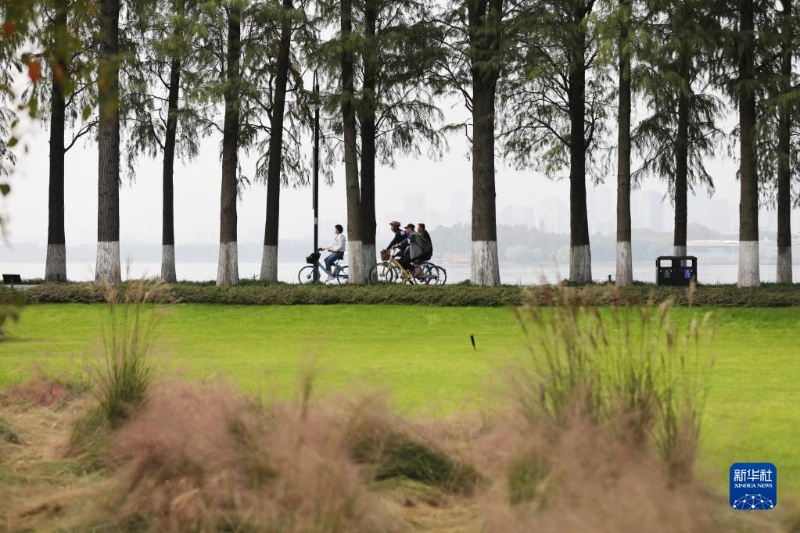 11月5日,市民在湖北武漢東湖風(fēng)景區(qū)騎行。新華社記者 姚琪琳 攝