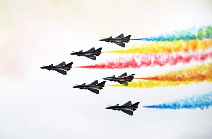 11月8日,空軍八一飛行表演隊在第十四屆中國航展上進行飛行表演。新華社記者 張永進 攝