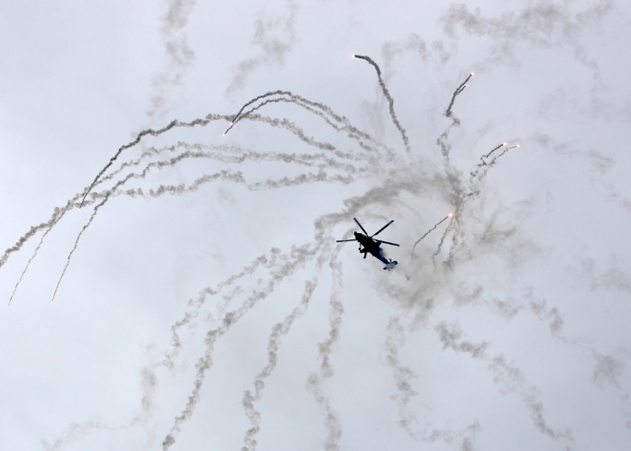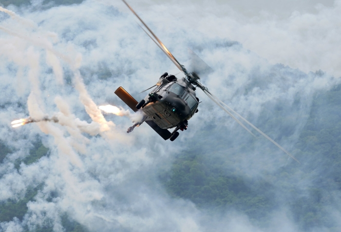 11月8日,陸軍某空中突擊旅直-20戰(zhàn)機(jī)發(fā)射干擾彈。