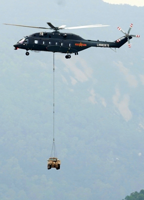 11月8日,陸軍某空中突擊旅直-8L戰(zhàn)機(jī)吊裝全地形車飛赴目標(biāo)地域。