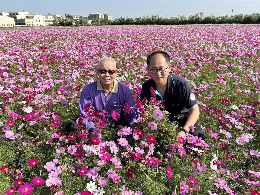 大安農(nóng)村目前正是波斯菊花海盛開的季節(jié),農(nóng)會(huì)歡迎民眾前往賞花拍照。(圖/大安區(qū)農(nóng)會(huì)提供)