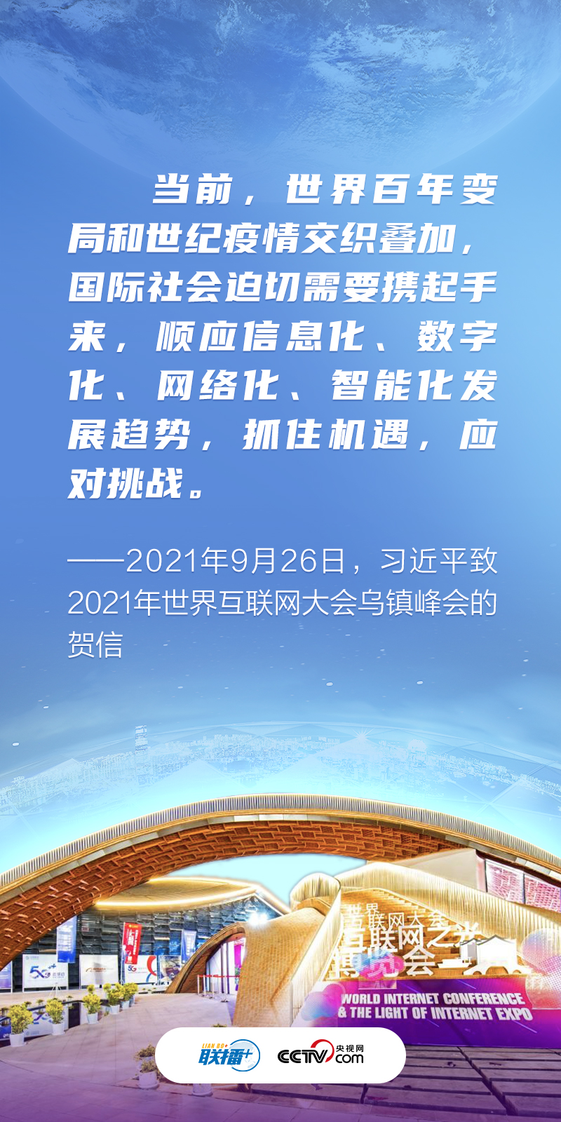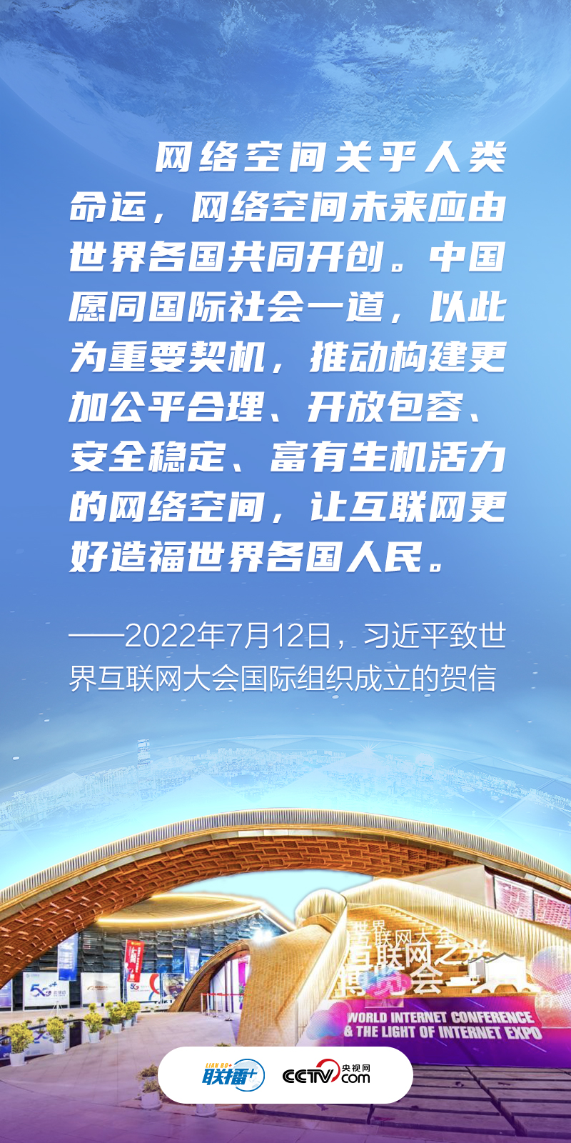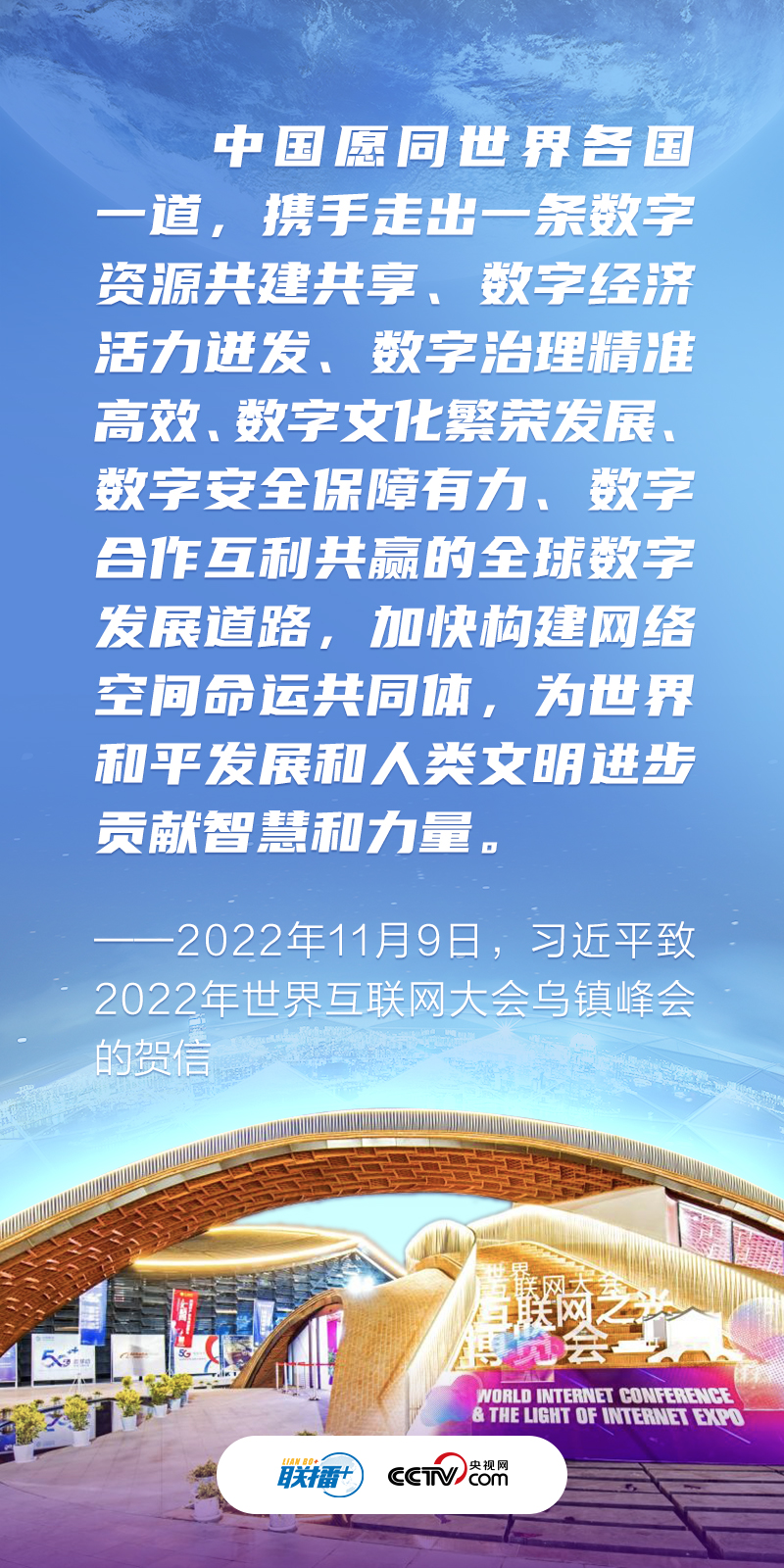 11月9日,習(xí)近平主席向2022年世界互聯(lián)網(wǎng)大會(huì)烏鎮(zhèn)峰會(huì)致賀信。2022年世界互聯(lián)網(wǎng)大會(huì)烏鎮(zhèn)峰會(huì)主題為“共建網(wǎng)絡(luò)世界 共創(chuàng)數(shù)字未來——攜手構(gòu)建網(wǎng)絡(luò)空間命運(yùn)共同體”。