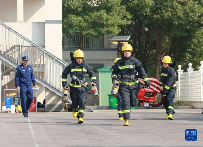 11月9日,在湖南省張家界市,消防員在進(jìn)行技能競(jìng)賽。