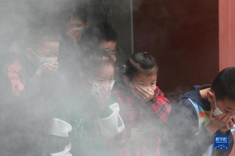 11月9日,在江蘇省無錫市揚(yáng)名中心小學(xué),學(xué)生在消防應(yīng)急疏散演練中撤離教學(xué)樓。
