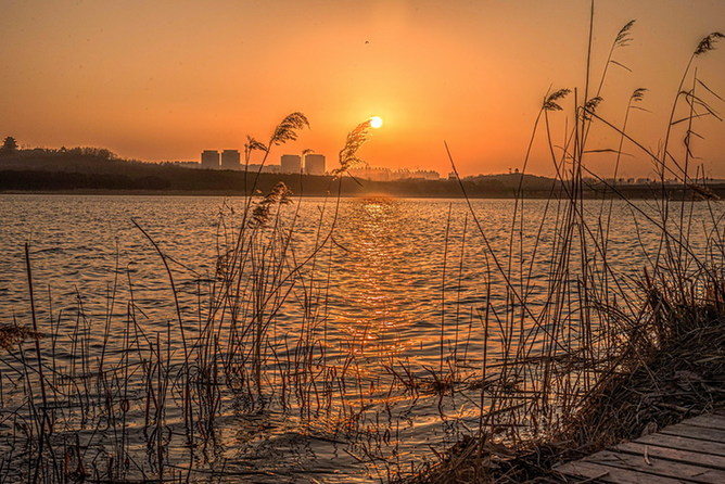 蘆葦,漣漪,山與城的剪影,斜掛半空的夕陽,以及漫天和滿河的金光,當然還有微風,以及此刻端詳著“母親河”的你。