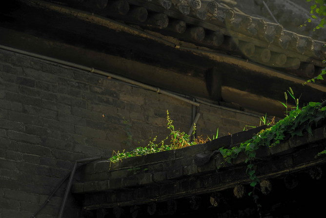 墻頭瓦檐,新生的嫩綠在百年的時光里舒展,陽光穿過錯落的屋檐,像一束追光,讓新生命變成主角。