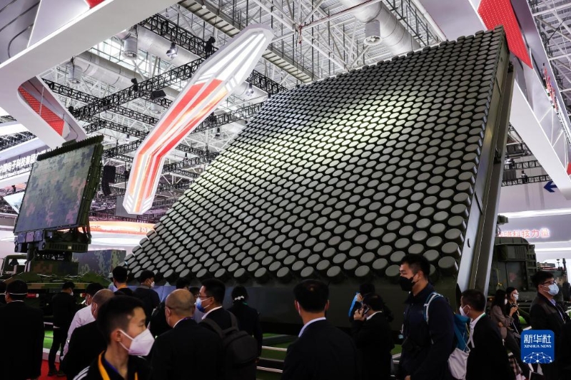 這是在第十四屆中國(guó)航展上拍攝的SLC-18 P波段有源相控陣?yán)走_(dá)(11月8日攝)。新華社記者 劉大偉 攝