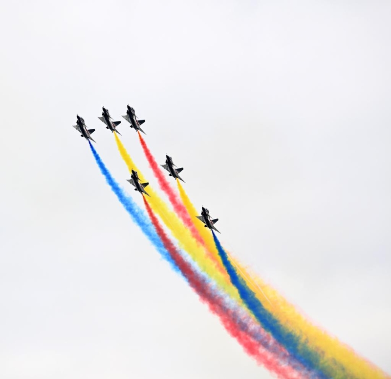 11月11日,中國空軍八一飛行表演隊在第十四屆中國航展上進(jìn)行飛行表演。