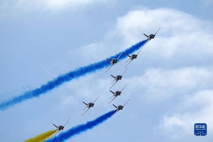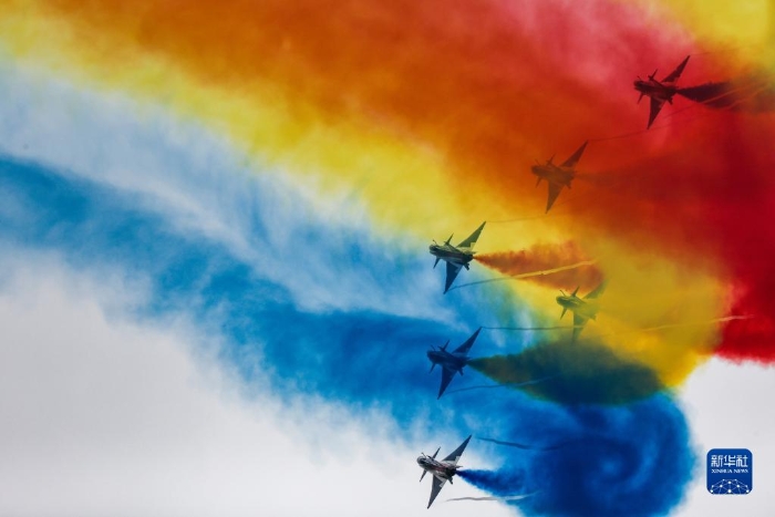 以藍(lán)天為幕,以戰(zhàn)機(jī)作筆。11日的中國航展上,人民空軍不同機(jī)型的飛行員,用壯美航跡向祖國和人民報(bào)告:展翼空天,飛向未來。