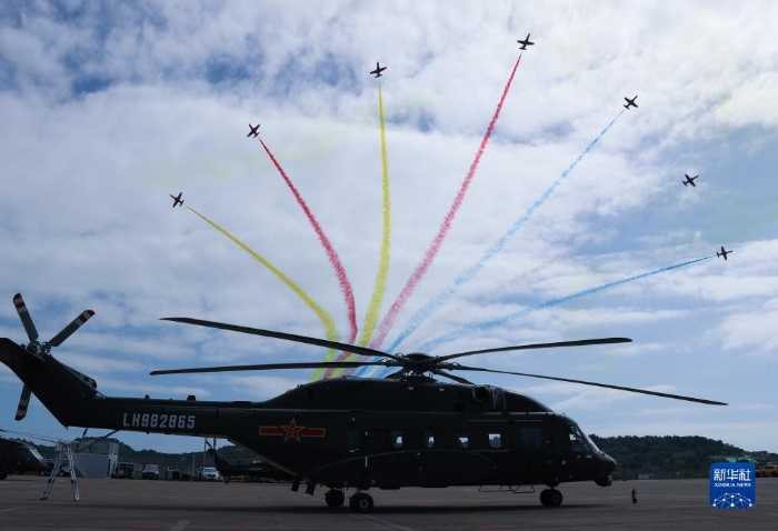 11月11日,中國空軍八一飛行表演隊(duì)在第十四屆中國航展上進(jìn)行飛行表演。新華社發(fā)(譚巳成 攝)