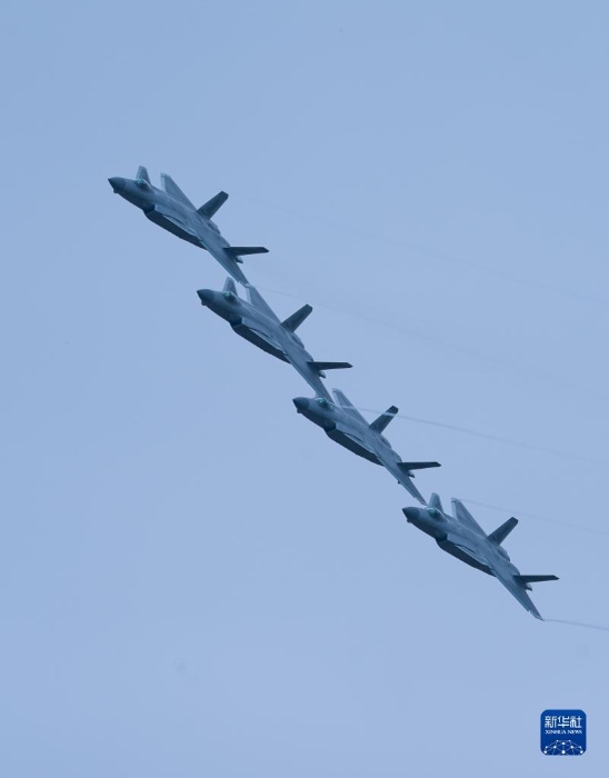 11月11日,殲-20戰(zhàn)機(jī)四機(jī)編隊(duì)在第十四屆中國航展上進(jìn)行飛行展示。新華社記者 張永進(jìn) 攝