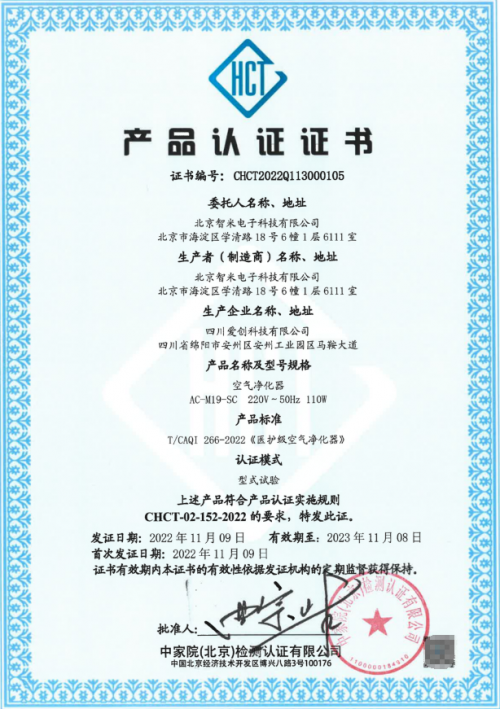 “醫(yī)護級空氣凈化器”即對微生物安全性有特殊要求,可供對空氣環(huán)境質(zhì)量有較高需求的嬰幼兒、易過敏等特殊人群使用的空氣凈化器。該項認證由國內(nèi)權(quán)威第三方檢測機構(gòu)中家院(北京)檢測認證有限公司(簡稱“中家院”)頒發(fā),認證標準極為嚴苛,可以為有更高環(huán)境需求的消費者提供選購依據(jù)。