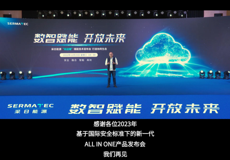 在發(fā)布會(huì)收官之際,李峰與大家揮手相約:“儲(chǔ)能技術(shù)探索之路艱難漫長(zhǎng),采日能源希望與行業(yè)同仁一起攜手穩(wěn)步前行!待2023年新一代ALL IN ONE產(chǎn)品發(fā)布會(huì)上,我們?cè)傧嘁?jiàn)!”