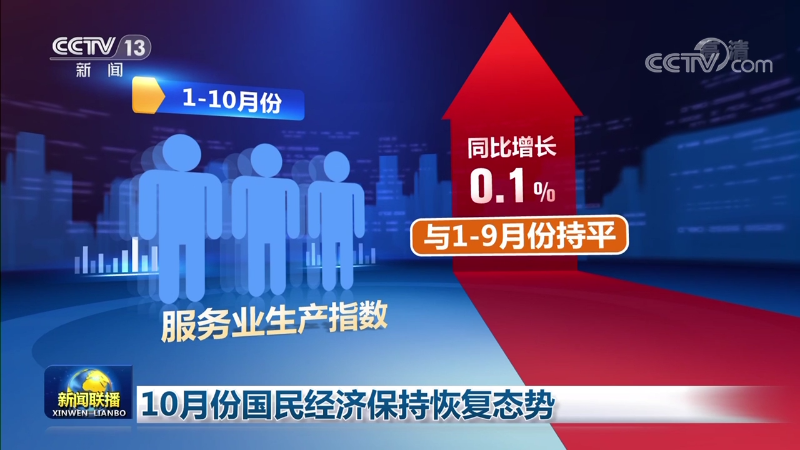 生產(chǎn)需求保持恢復(fù)態(tài)勢(shì)。1—10月份,規(guī)模以上工業(yè)增加值同比增長(zhǎng)4.0%,增速比1—9月份加快。服務(wù)業(yè)生產(chǎn)指數(shù)同比增長(zhǎng)0.1%,與1—9月份持平。