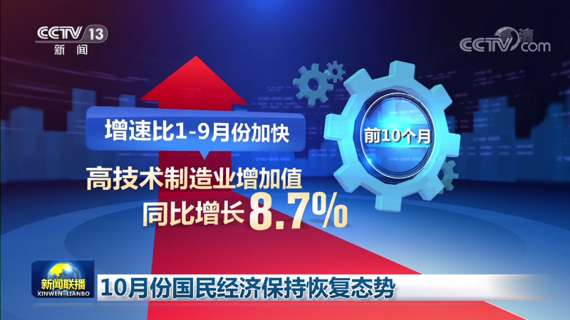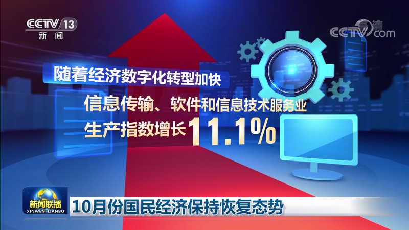 結(jié)構(gòu)調(diào)整扎實(shí)推進(jìn)。前10個(gè)月,高技術(shù)制造業(yè)增加值同比增長(zhǎng)8.7%,增速比1—9月份加快。隨著經(jīng)濟(jì)數(shù)字化轉(zhuǎn)型加快,信息傳輸、軟件和信息技術(shù)服務(wù)業(yè)生產(chǎn)指數(shù)增長(zhǎng)11.1%。