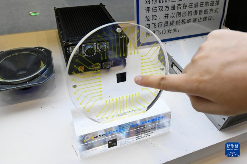這是在第十屆中國(綿陽)科技城國際科技博覽會展會現(xiàn)場展出的北斗三號導航通信芯片(11月16日攝)。