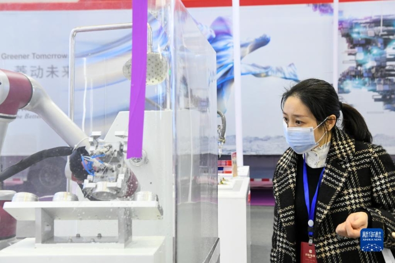 11月16日,在第十屆中國(綿陽)科技城國際科技博覽會上,觀眾觀看柔性智能機器人作業(yè)。