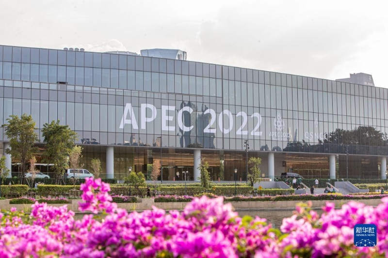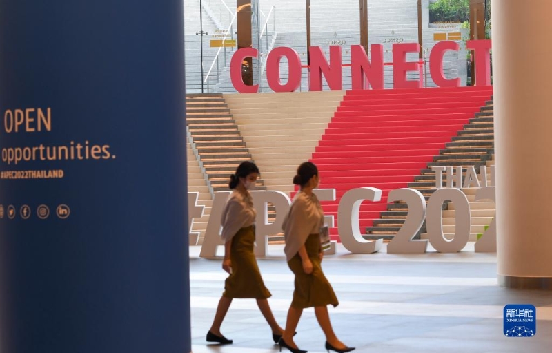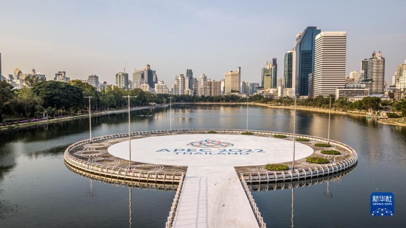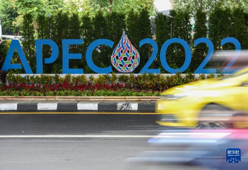這是11月16日在泰國(guó)首都曼谷街頭拍攝的2022年亞太經(jīng)合組織會(huì)議標(biāo)識(shí)。