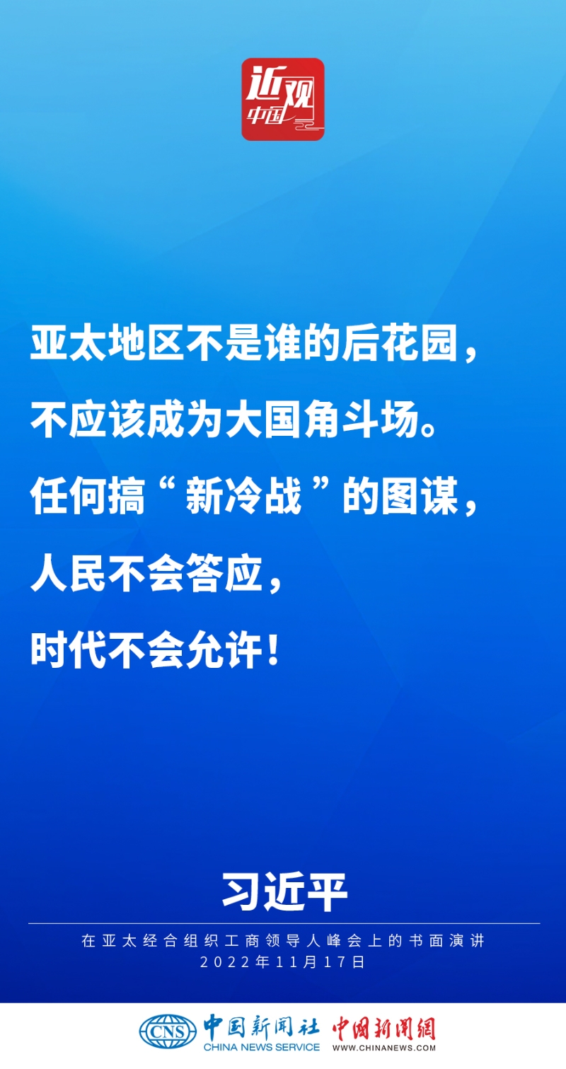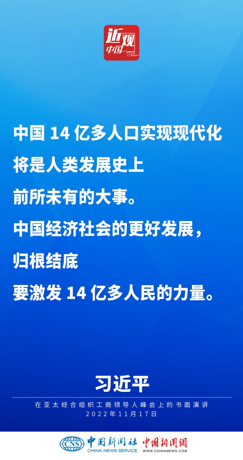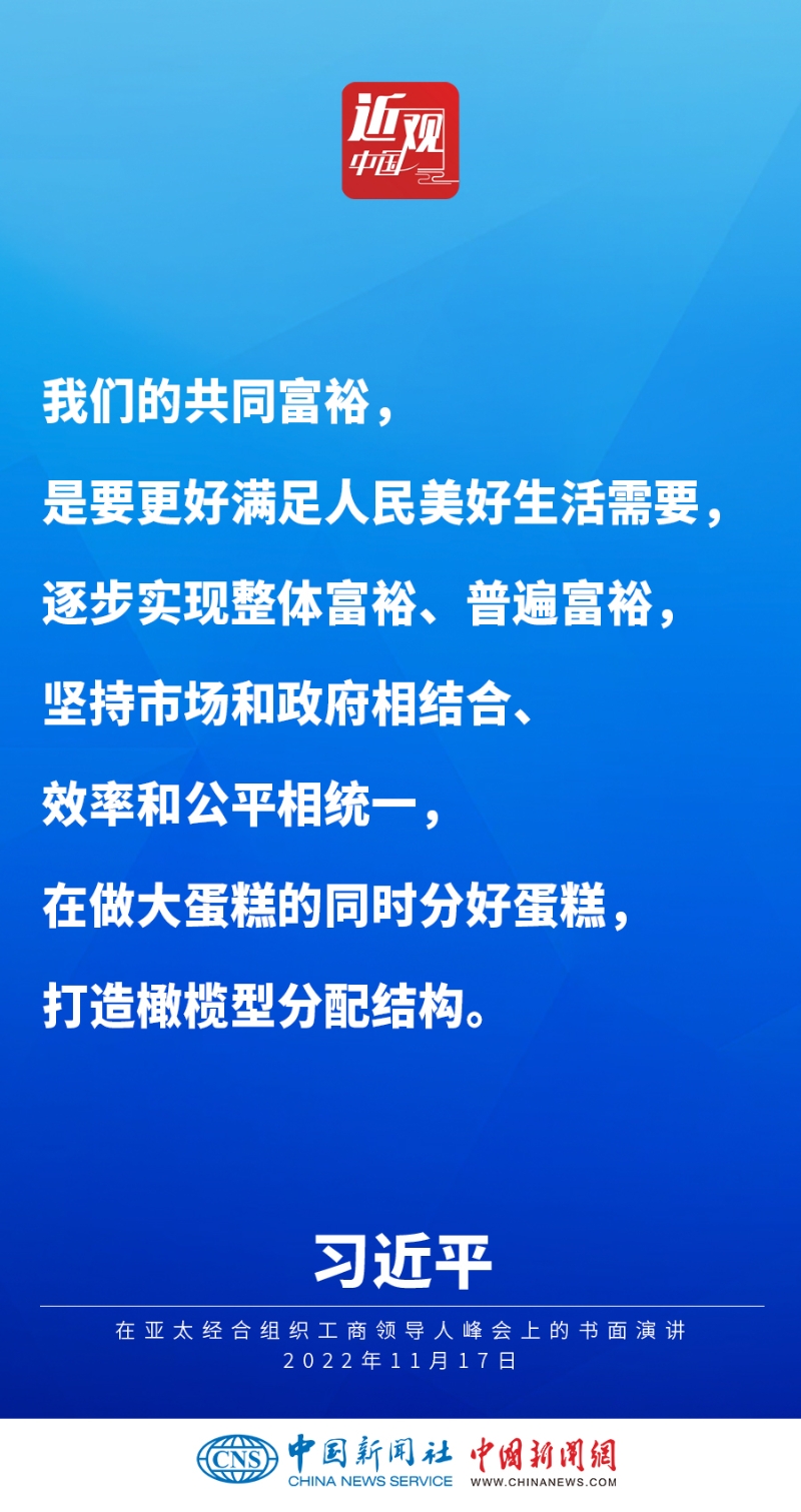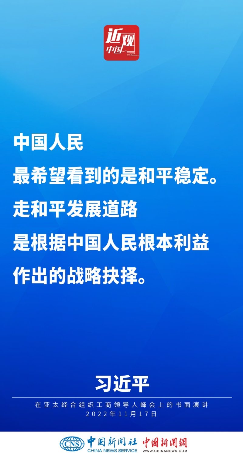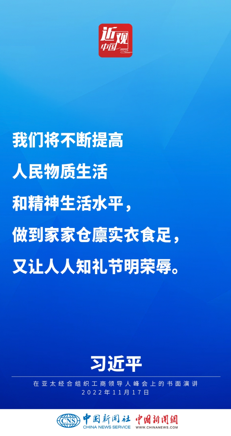 2022年11月17日,中國國家主席習(xí)近平在亞太經(jīng)合組織工商領(lǐng)導(dǎo)人峰會(huì)上發(fā)表題為《堅(jiān)守初心 共促發(fā)展 開啟亞太合作新篇章》的書面演講,他指出——