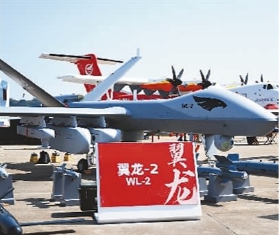 在珠海舉行的第十四屆中國(guó)航展上展出的翼龍-2無(wú)人機(jī)。