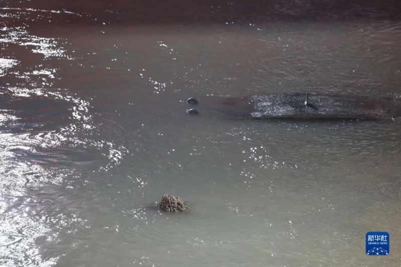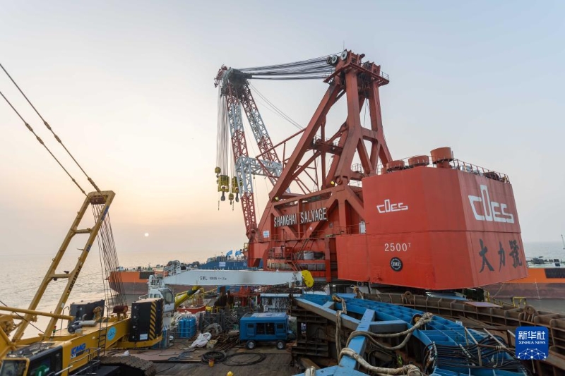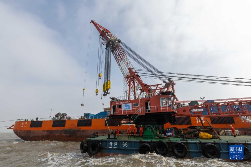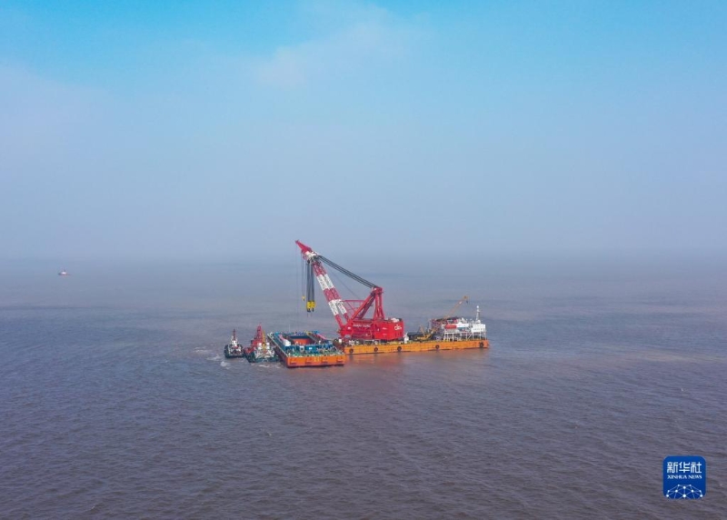 11月20日拍攝的長江口二號古船整體打撈出水施工現(xiàn)場。