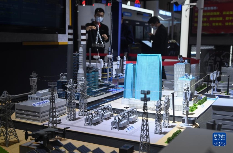 11月20日,工作人員向參觀者介紹5G智能工廠生產(chǎn)場(chǎng)景。