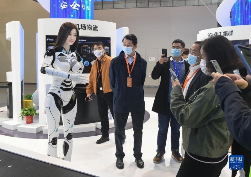 11月20日,參觀者在“2022中國(guó)5G+工業(yè)互聯(lián)網(wǎng)”成果展展廳參觀。