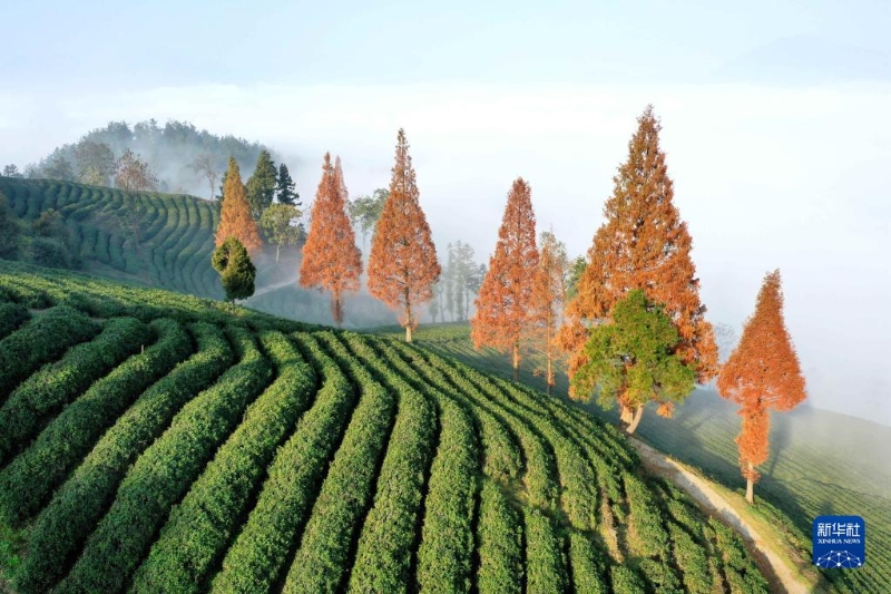 這是11月19日拍攝的湖北省襄陽市??悼h一處茶園景色(無人機照片)。