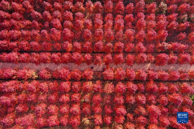 這是11月19日在四川省眉山市東坡區(qū)太和鎮(zhèn)元寶村拍攝的一處紅楓林(無人機照片)。