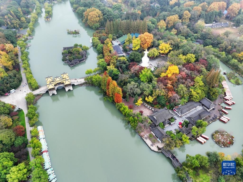 這是11月19日拍攝的江蘇揚州瘦西湖風景區(qū)初冬景色(無人機照片)。