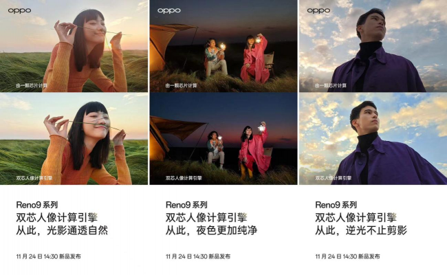 11月17日,OPPO Reno9系列正式官宣將于11月24日發(fā)布,并同步開啟預熱。11月21日,OPPO Reno9系列新品影像配置正式公布。同時,OPPO釋出多組人像對比樣張,展現(xiàn)了雙芯人像計算引擎的強勁實力。