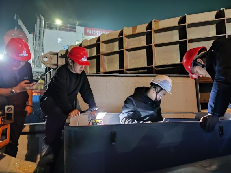 11月20日,上海大學(xué)無人艇團(tuán)隊在長江口二號古船打撈項目現(xiàn)場調(diào)試探測儀器。(受訪者供圖)