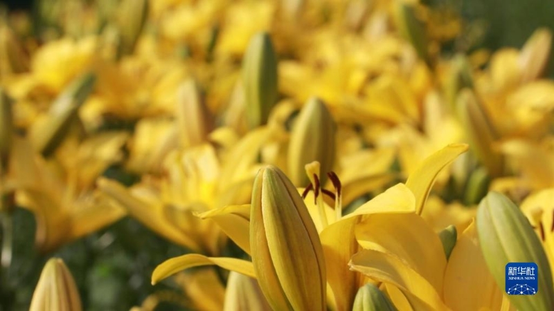 這是2022年8月17日在黑龍江省漠河市中藥材展示園內(nèi)拍攝的百合花。新華社發(fā)