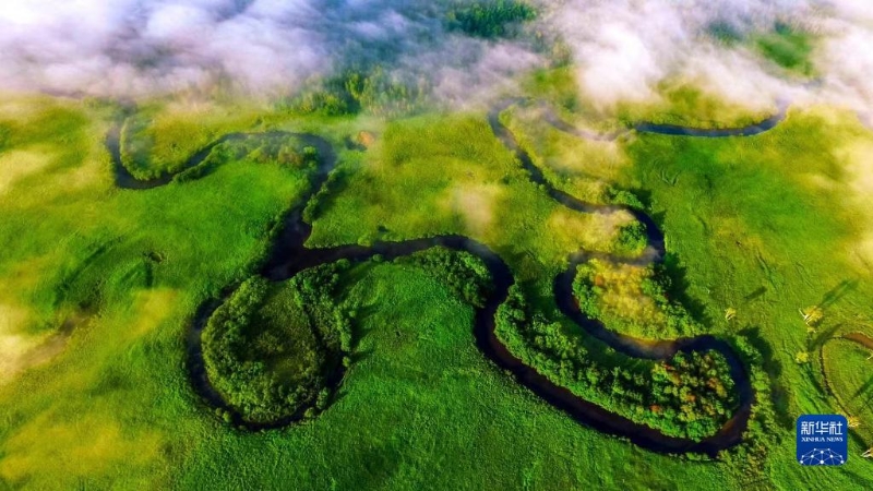 這是2022年6月20日拍攝的大興安嶺地區(qū)南甕河濕地(無(wú)人機(jī)照片)。新華社發(fā)